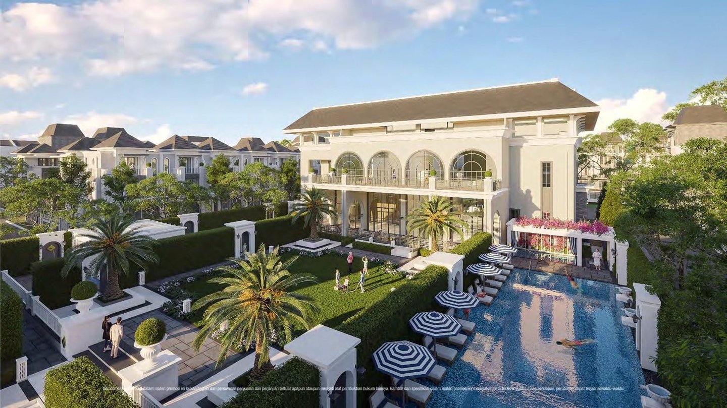 Clubhouse mewah dengan kolam renang, gym, spa, dan lounge eksklusif