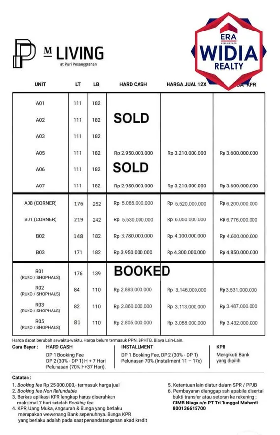 Harga Jual: Rp. 2,950,000,000.- (exclude VAT) Harga KPR: Rp. 3,600,000,000.- (exclude VAT)