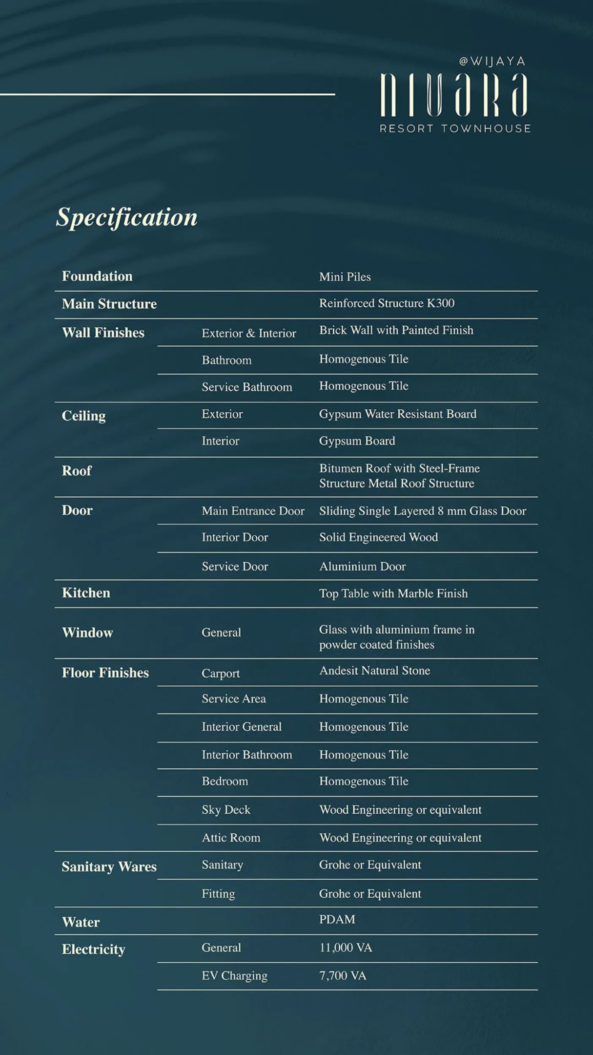 Nivara Resort Wijaya Type Unit