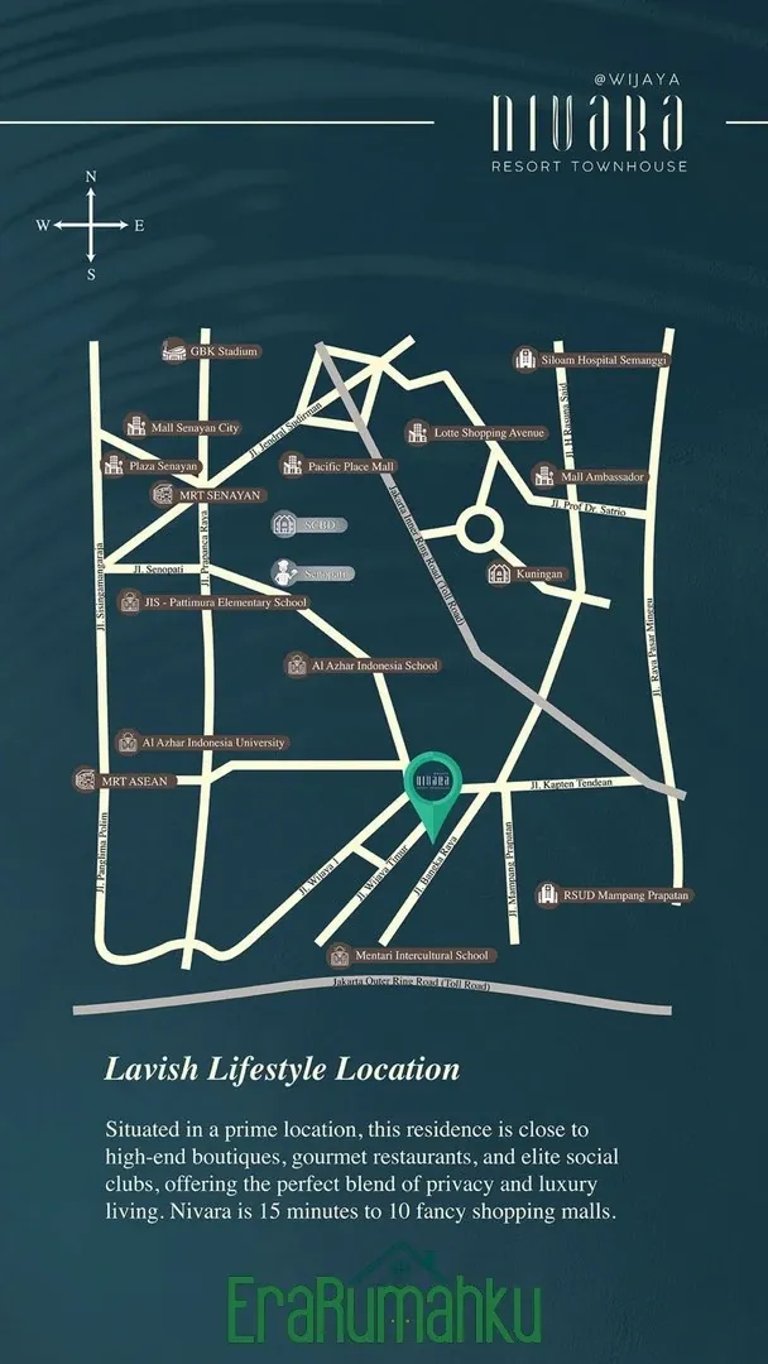 Nivara Resort Wijaya Townhouse ialah hunian premium modern baru yang hadir dikawasan kebayoran baru Jakarta Selatan. yang berkonsep Townhouse modern dengan One Gate System dan 24 Hour Security
