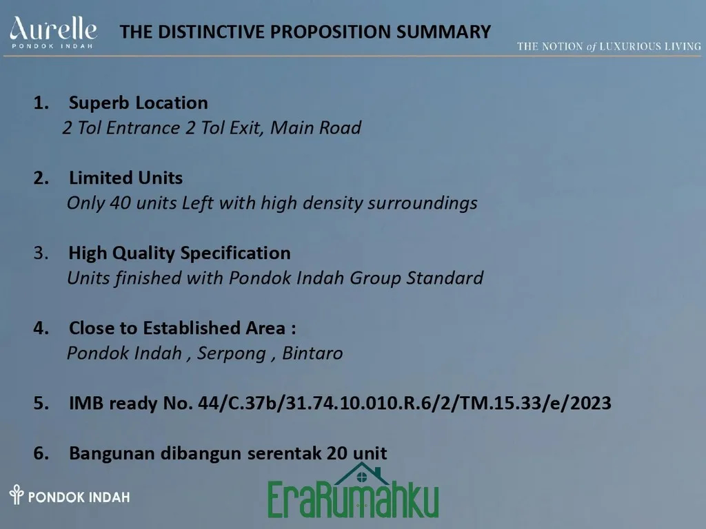Cluster Aurelle – Pondok Indah Townhouse 2 Tipe Unit & Spesifikasi