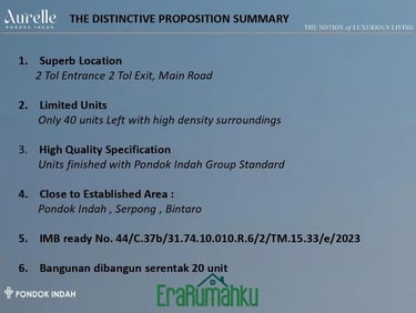Beberapa alasan mengapa Cluster Aurelle menjadi pilihan menarik baik sebagai hunian maupun investasi: