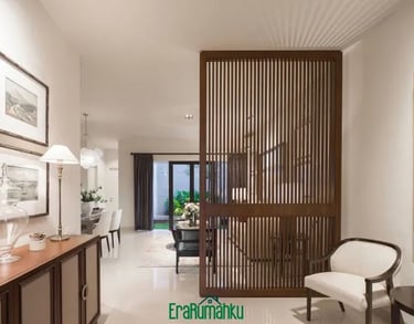 Rumah bergaya tropical kontemporer dengan atmosfer tropical resort yang teduh di kawasan Kebayoran Baru.