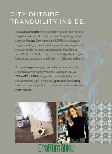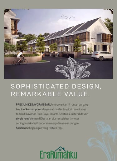 PRECIUM KEBAYORAN BARU menghadirkan ambience hunian premium melalui desain dan kualitas bangunan yang mewah, lokasi terbaik dengan kemudahan akses.