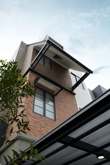 SYNTHESIS HUIS perumahan terletak di Cijantung yang selangkah ke Tb. Simatupang Jakarta Selatan, rumah bergaya Scandinavian3 Lt 4 Km Tidur hanya 2 Man di Jalan Utama JAKARTA